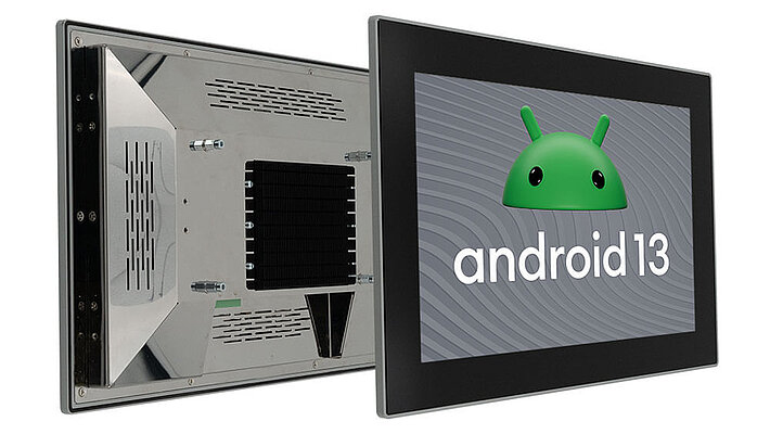 This panel PC is also available with preinstalled Android 13 operating system. Benefit from the high computing power of the x86 architecture and at the same time from the regular updates as well as the customization and remote management options of Android 13: