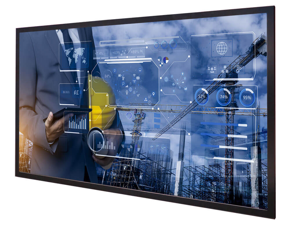 Our frame solutions such as front bezel or TrueFlat Glass (also with glass protection frame) ensure an elegant design for the open frame monitors.
